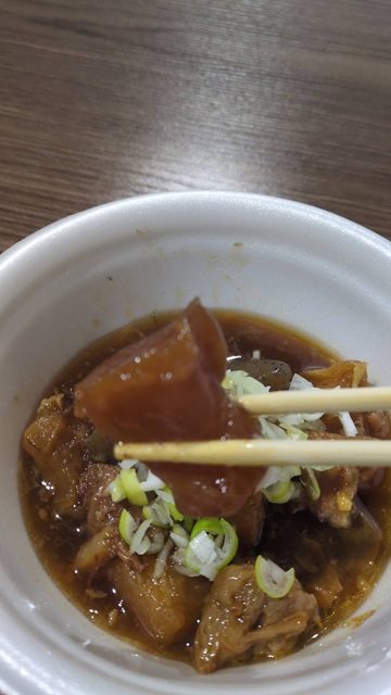 仕上がりは見ての通り、トロットロ!アキレス腱から溢れ出たコラーゲンが溶け出し、牛すじはもはや『こんにゃくより柔らかい』というバグが発生(笑)。
