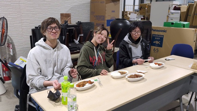 倉庫チームも、カレーを食べて午後の配送・積み込みへの気合を注入!